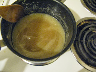 Once the sugar had de solved, I added the butter. I heated this until it had browned. This was when my second mistake occurred. The recipe states to cook until it becomes a copper color. I am confident I didn't let the sugar cook enough.