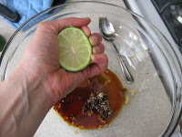 I added the soy sauce, lime juice, coconut milk, and onion to the same bowl.