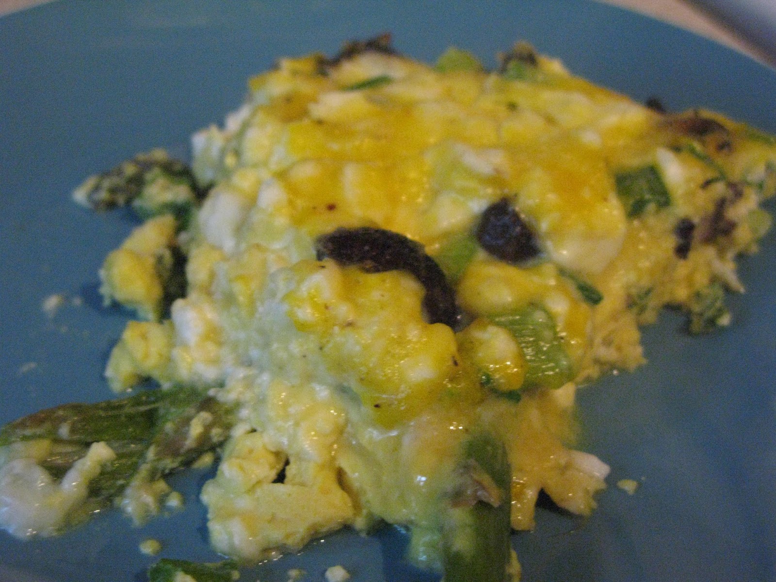 I added mushrooms and asparagus and omitted the bacon. I also switched out the cheddar cheese for feta.