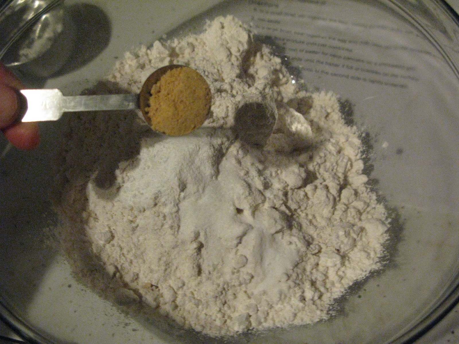I added the flour, baking powder, baking soda, salt, ginger and cinnamon into a bowl.
