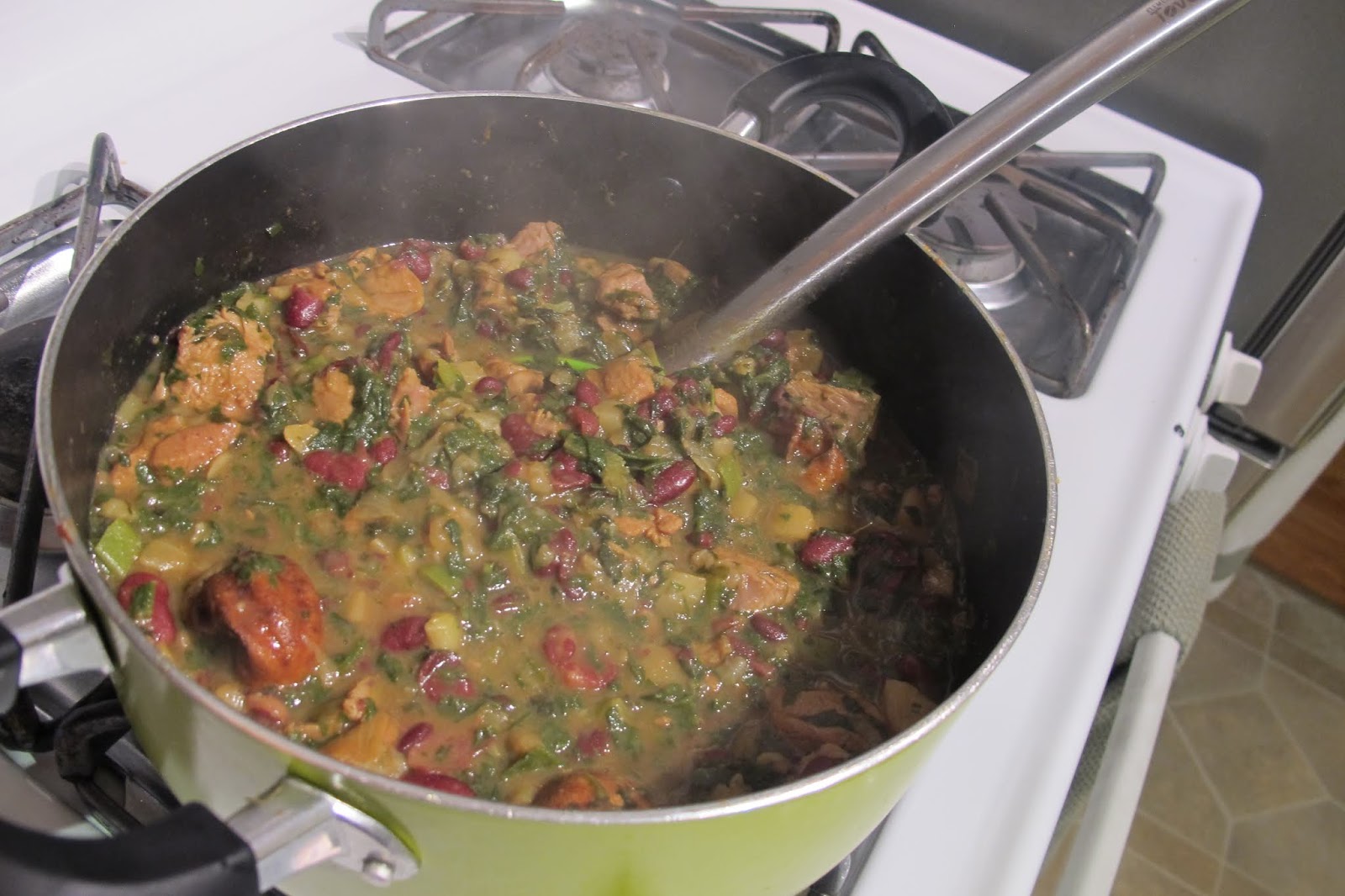 While the lamb was still simmering for an hour, I also cooked the herbs and spinach in a tablespoon of oil over medium heat. I cooked the herbs until they had become dark green.
