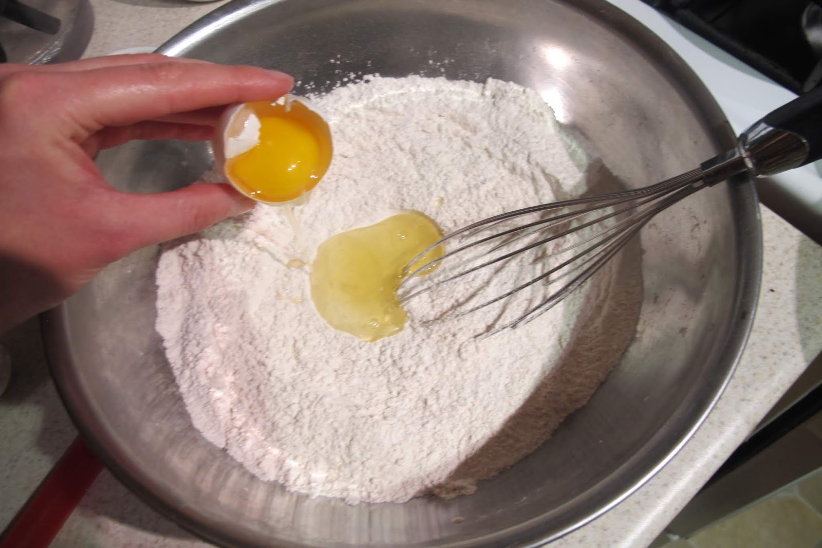 I added the egg, melted butter, and milk. I whisked the batter together.