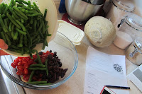 This green beans with tomatoes, olives, and eggs recipe came from Martha Stewart. I changed the quantities a little bit. I also added lemon zest.